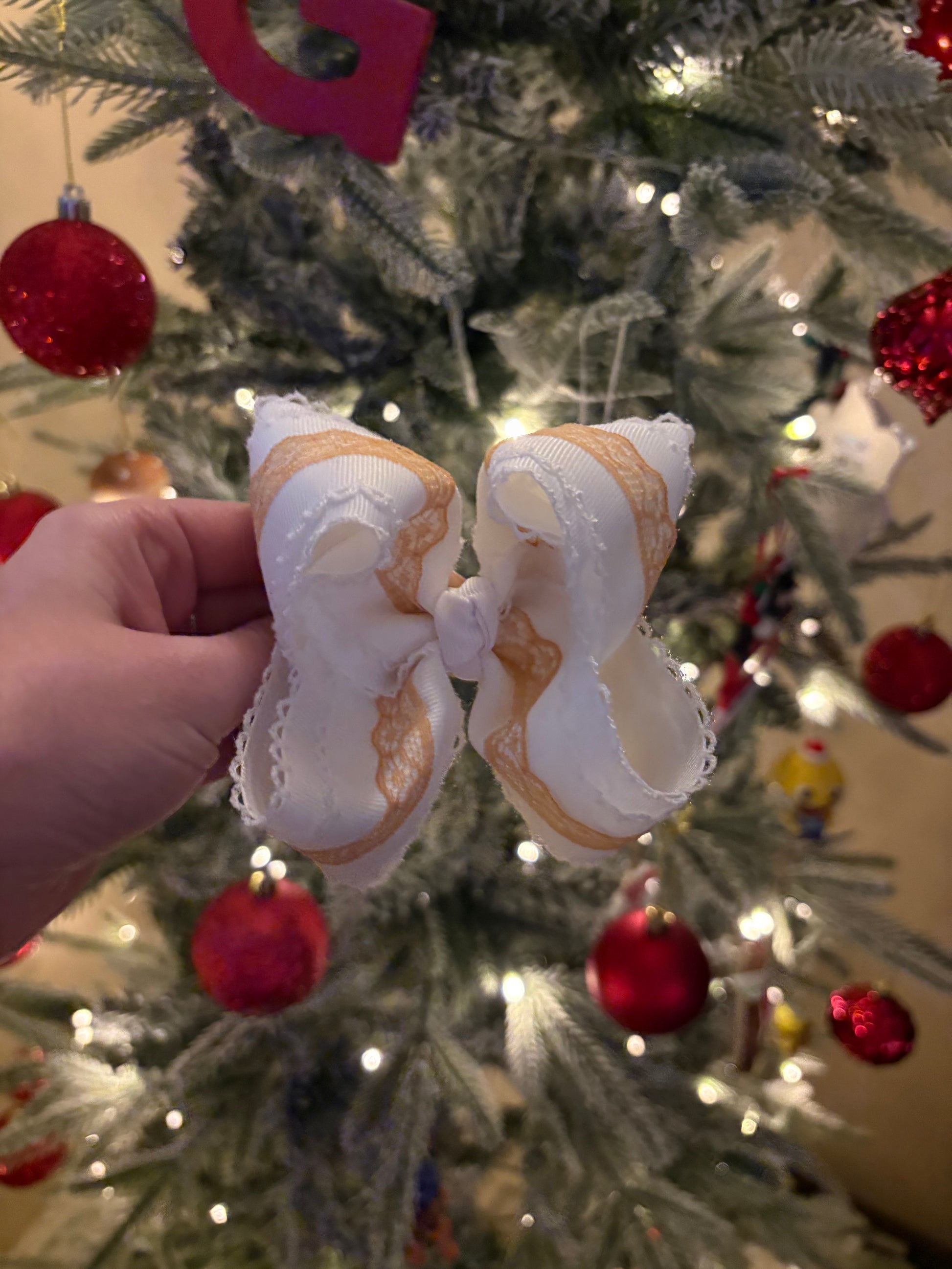 Beige & White Moonstitch & Lace Boutique Bow - 4 inches